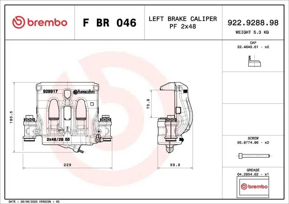 ZACISK HAMULCOWY MERCEDES-BENZ VITO VAN (W447) 10/14- / MERCEDES-BENZ VITO MIXTO (DOUBLE CABIN) (W447) 10/1 SZT BREMBO (Брембо) FBR046