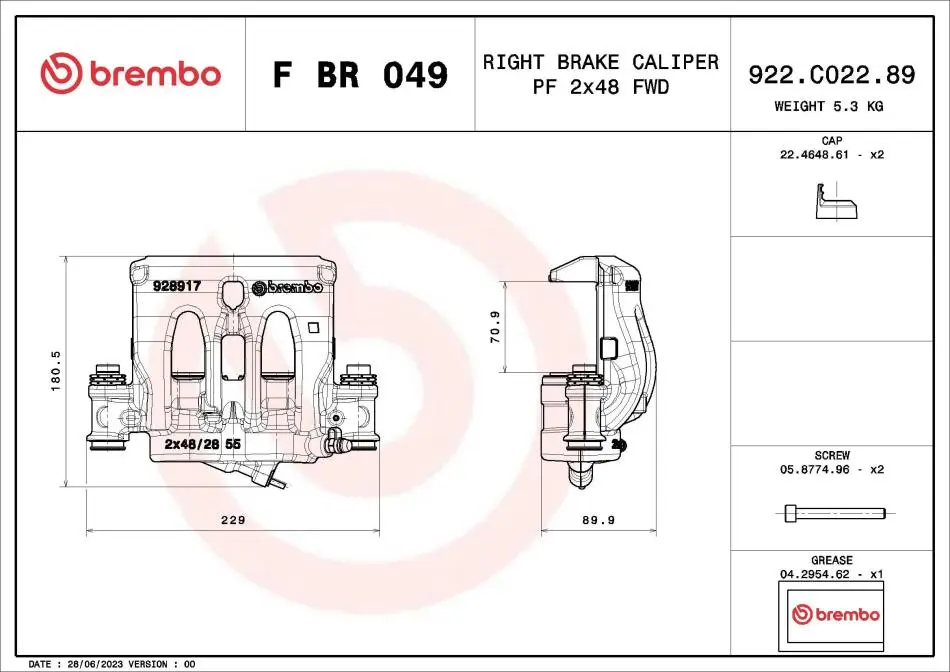 ZACISK HAMULCOWY MERCEDES-BENZ MARCO POLO CAMPER (W447) 03/15-> / MERCEDES-BENZ VITO MIXTO (DOUBLE CABIN) (SZT BREMBO (Брембо) FBR049