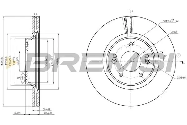 Тип гальмівного диска: вентильований