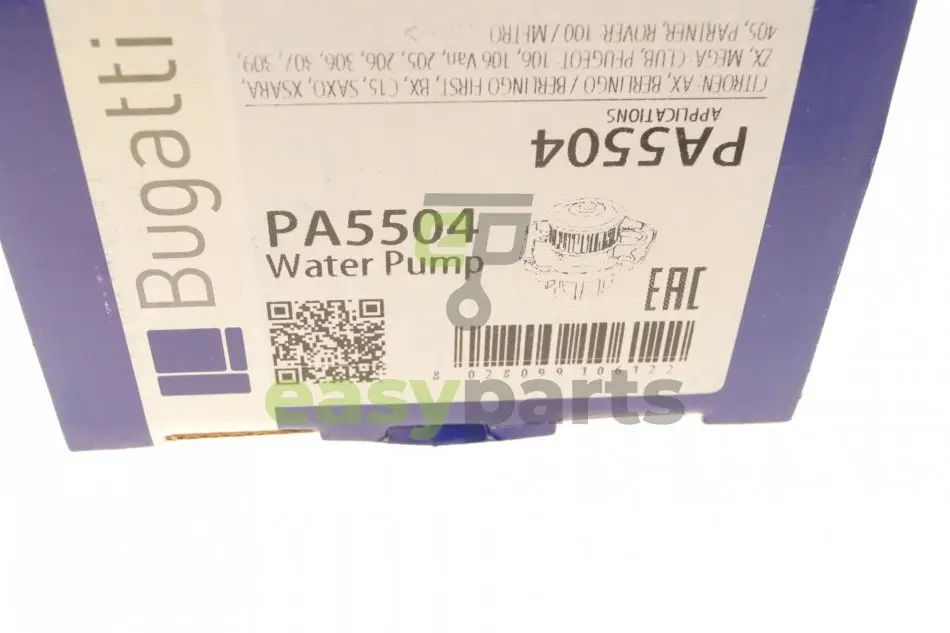 Помпа води Citroen Berlingo/Peugeot 106/205/206/306/307/309/Partner 1.1/1.4i 86- (B/B) (6 лоп) BUGATTI PA5504
