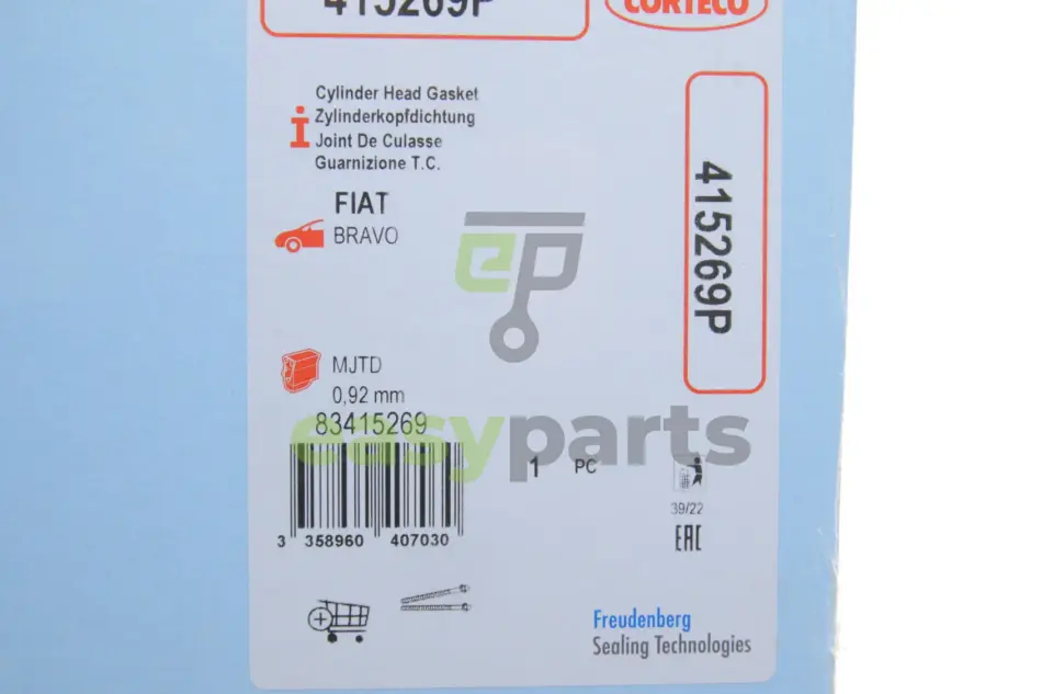 Прокладка ГБЦ Fiat Doblo 1.6D Multijet 10- (1 метка) (0.92mm) CORTECO (Кортеко) 415269P