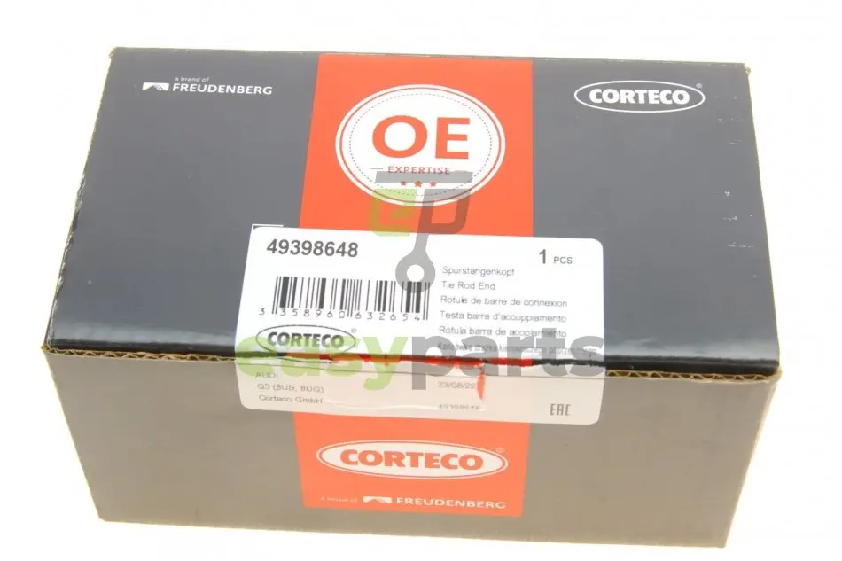 Наконечник тяги рульової (R) Skoda Octavia II 04-13/SuperB/Yeti 09-17/VW Caddy III/Passat/Touran 04- CORTECO (Кортеко) 49398648