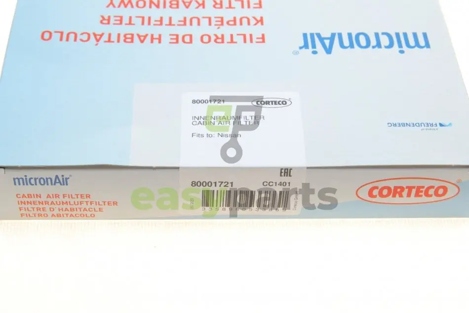 Фільтр салону Nissan Juke/Leaf 10- (вугільний) CORTECO (Кортеко) 80001721