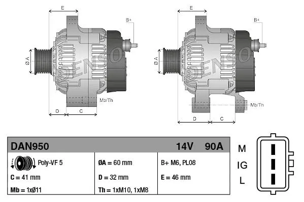 Генератор DENSO (Денсо) DAN950