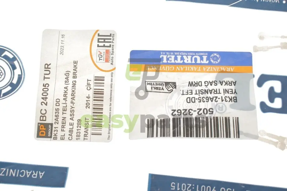 Купити DP BC 24005 TUR Трос ручника (задній) (R) Ford Transit 14- (спарка)(1562/1343mm) з швидкою доставкою, або зручним самовивозом, по доступній ціні