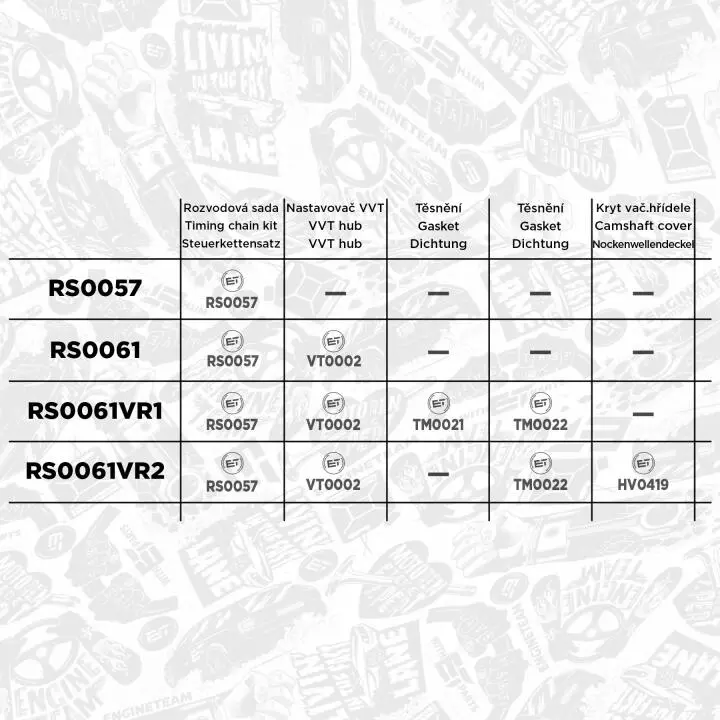 ROZRZAD KPL LANCUCHOWY Z PRZESTAWIACZEM FAZ AUDI SEAT SKODA VW 2.0TFSI 16V BWA BLR 2005> SZT ET ENGINETEAM RS0061