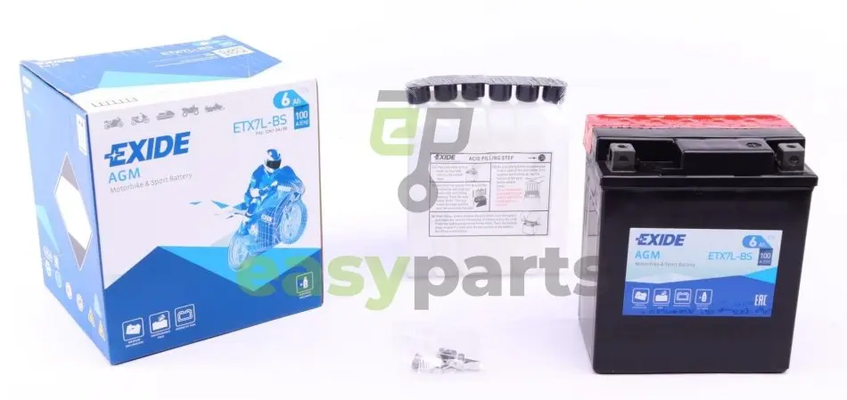 Акумуляторна батарея 6Ah/100A (113x70x130/+R/B0) (AGM) (мото) (сухозаряджений) EXIDE ETX7L-BS