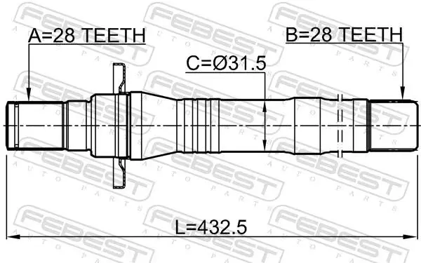 Вал приводний 28X432.5X28, HYUNDAI FEBEST (Фебест) 1212-SFCM