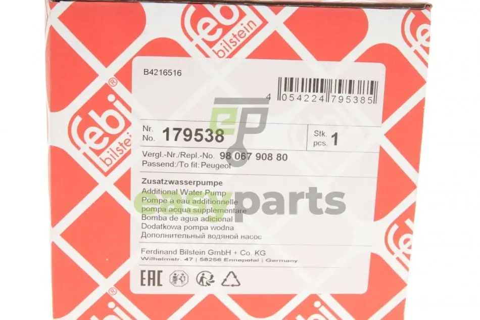 Насос системи охолодження (додатковий) Citroen C4/C5/Peugeot 207/208/308/508/3008/5008 1.6 07- FEBI BILSTEIN 179538