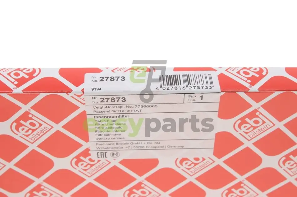 Фільтр салону Fiat Panda 1.1-1.4 JTD 95-/Ford Ka 1.2/1.3 TDCi 08-16 FEBI BILSTEIN 27873