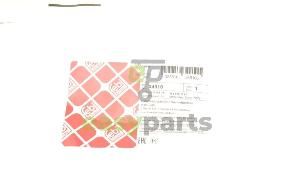 Трос ручника (передній) MB A-class (W168) 97-04 (987mm) FEBI BILSTEIN 34910