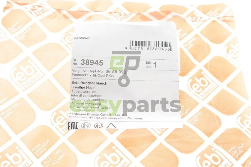 Патрубок рециркуляції газу Opel Astra G/H 98-12/Corsa C/D 00-14 FEBI BILSTEIN 38945