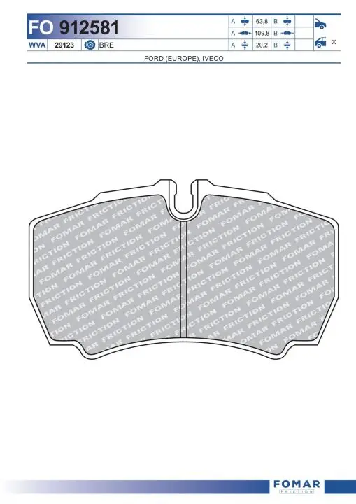 - FO 912581 FOMAR підходить для таких марок/моделей авто: