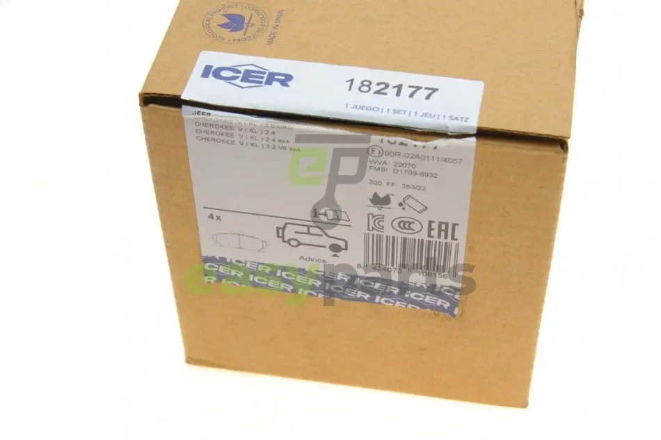 Колодки гальмівні (передні) Jeep Cherokee 13- ICER 182177