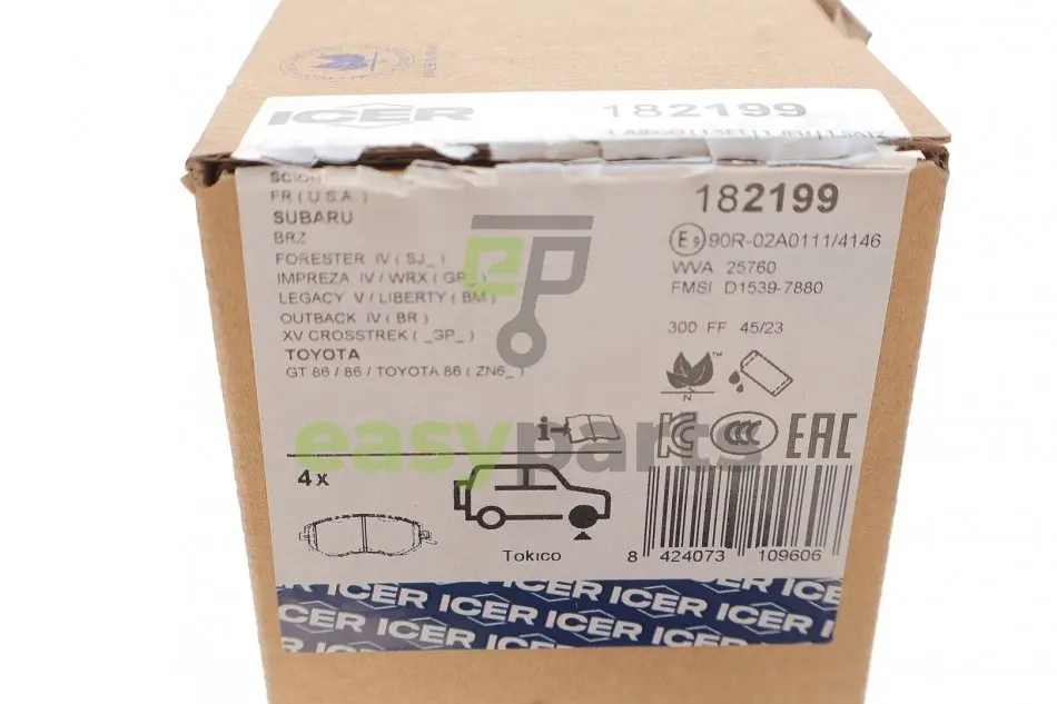 Колодки гальмівні (передні) Toyota GT 86 12-/Subaru Forester/Impreza/Legace V/Outback/XV 07- ICER 182199