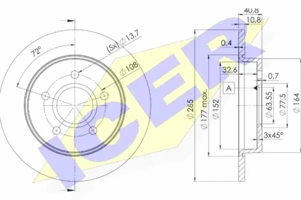 Диск гальмівний (задній) Ford C-Max 07-10/Focus 04- (265x11) (з покриттям) (повний) ICER 78BD3965-2