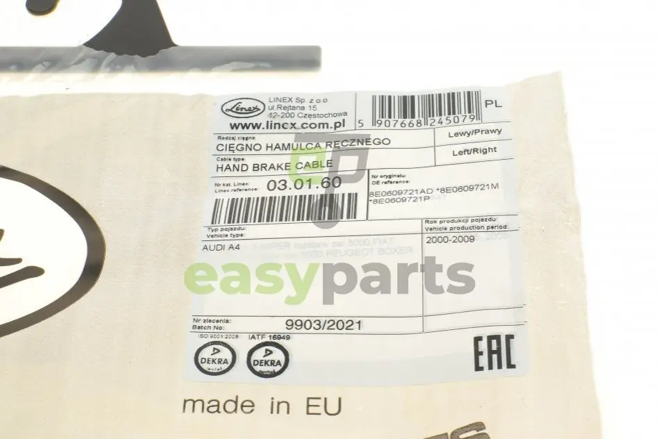 Трос ручника (задній) Audi A4 00-05 (1727/1555mm) LINEX 03.01.60