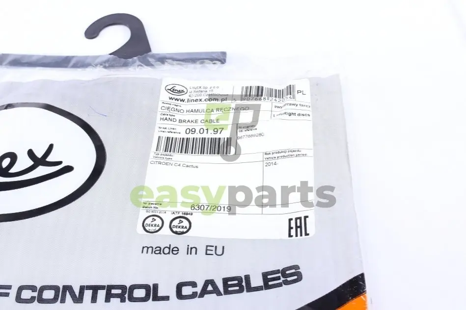 Купити LINEX 09.01.97 Трос ручника (задній) Citroen C4 Cactus 14- (1945/1090mm) з швидкою доставкою, або зручним самовивозом, по доступній ціні