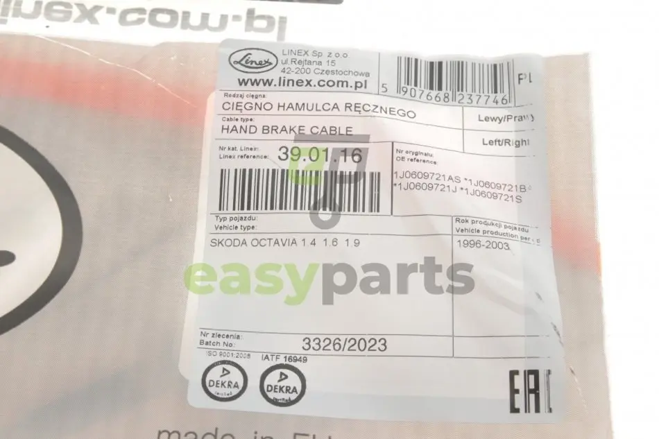 Трос ручника Skoda Octavia 1.6-2.0 96-10 (1620/944 мм) LINEX 390116