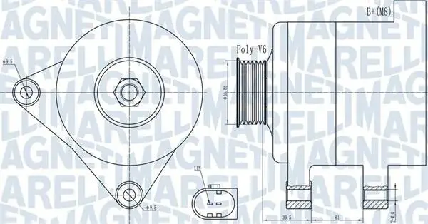 Генератор (14В, 140А) MERCEDES SPRINTER 3-T (B906), AUDI A1, A3, Q3, TT, SEAT ALHAMBRA, ALTEA, ALTEA XL, IBIZA IV, IBIZA IV SC, LEON, TOLEDO IV, SKODA FABIA II, RAPID, ROOMSTER 1.2-2.1D 05.03-12.22 MAGNETI MARELLI (Магнеті Мареллі) 063732011010