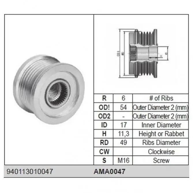 Ремінний шків генератора BMW [940113010047] MAGNETI MARELLI (Магнеті Мареллі) AMA0047