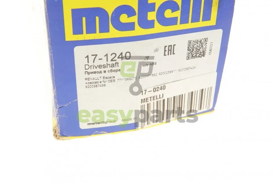 Піввісь (передня) (R) Fiat Marea 1.6 96-02 (25z/931mm) (-ABS) Metelli (Метеллі) 17-0240