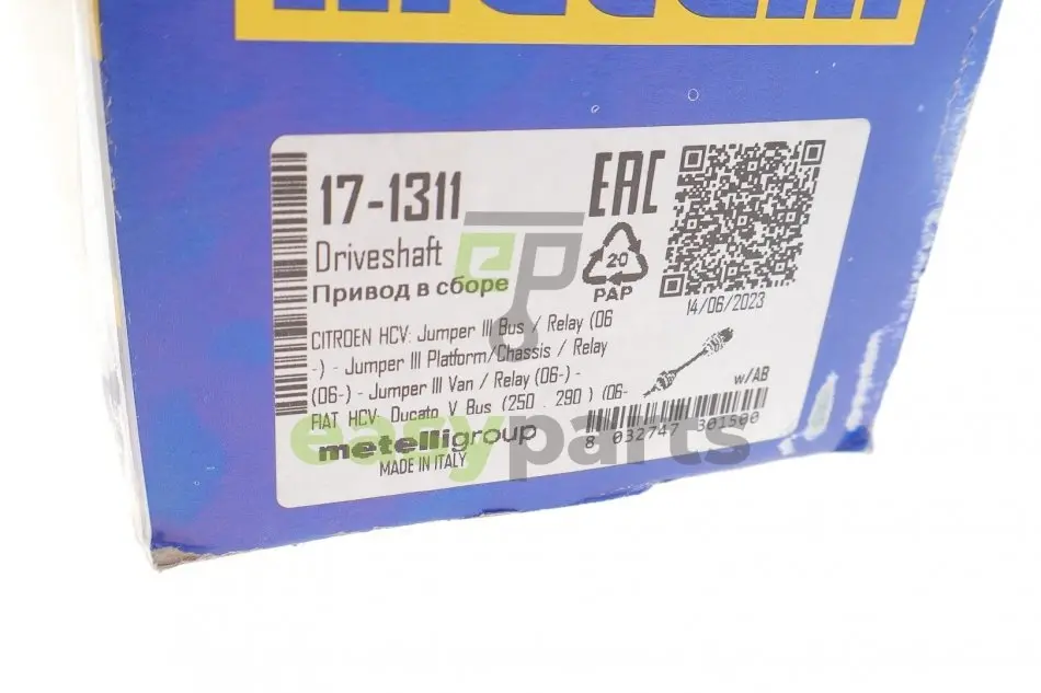 - 17-1311 Metelli (Метеллі) підходить для таких марок/моделей авто: