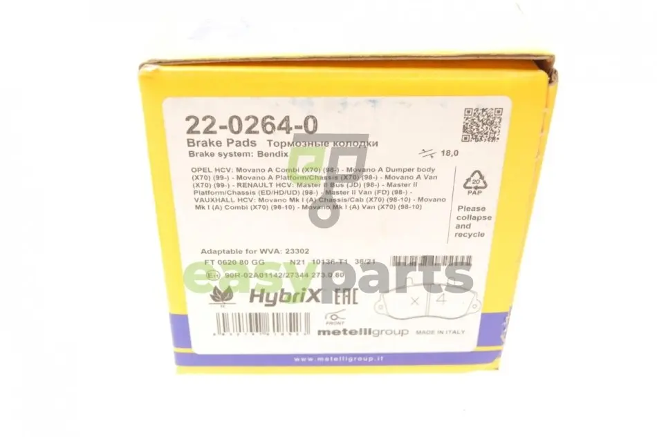 - 22-0264-0 Metelli (Метеллі) підходить для таких марок/моделей авто: