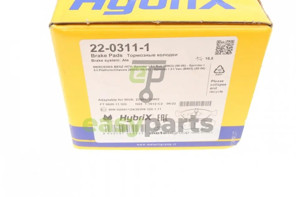 Колодки гальмівні (задні) MB Sprinter 208-316 96- (велика) Metelli (Метеллі) 22-0311-1