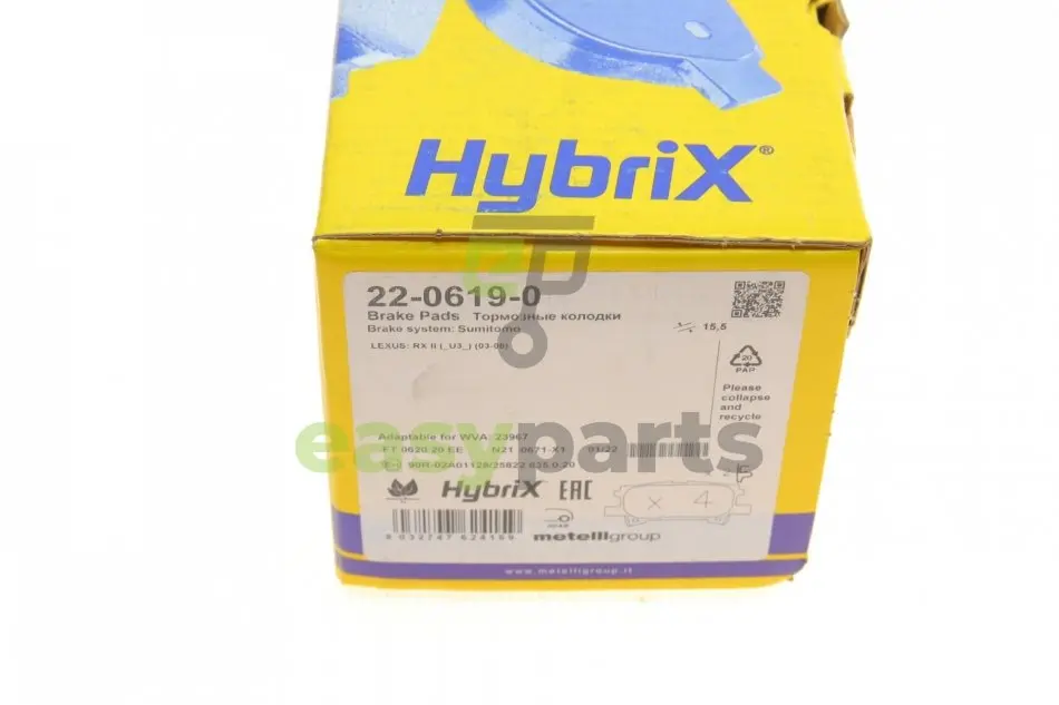 Колодки гальмівні (задні) Lexus RX 03-08 Metelli (Метеллі) 22-0619-0