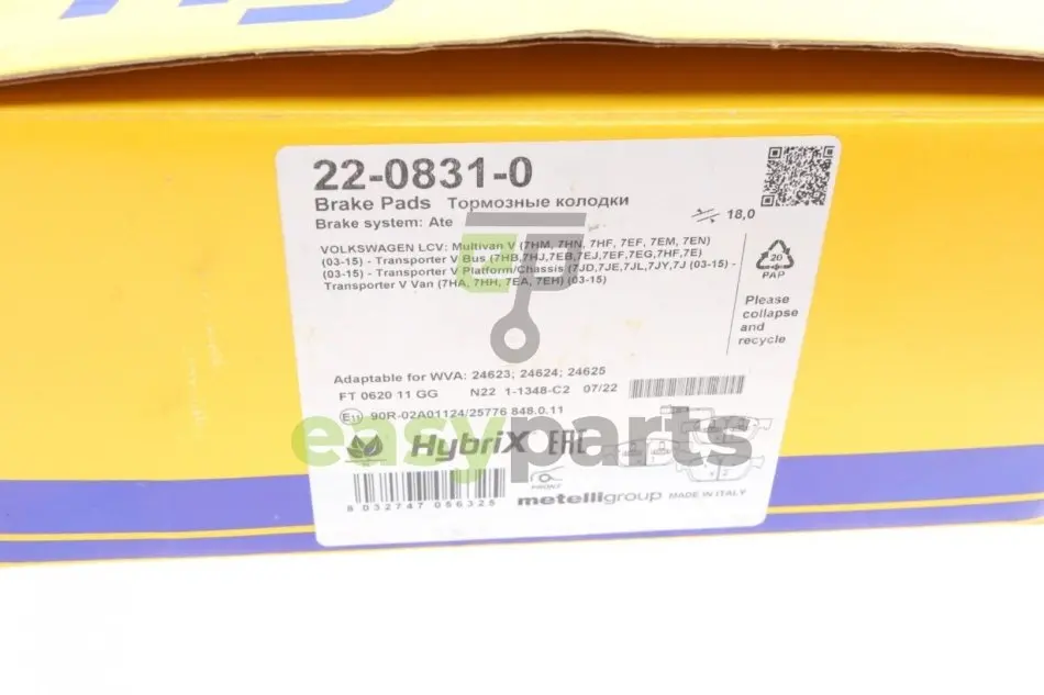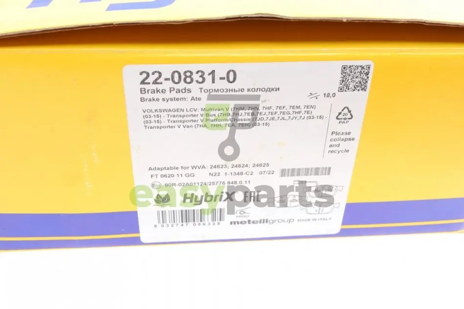Колодки гальмівні (передні) VW T5 03-15/T6 15- (Ate - Teves)/(з датчиком) Metelli (Метеллі) 22-0831-0