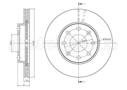 Диск гальмівний (передній) Chevrolet Aveo/Kalos 04-/Spark 10- (236x20) (з покриттям) (вентильований) Metelli (Метеллі) 230790C