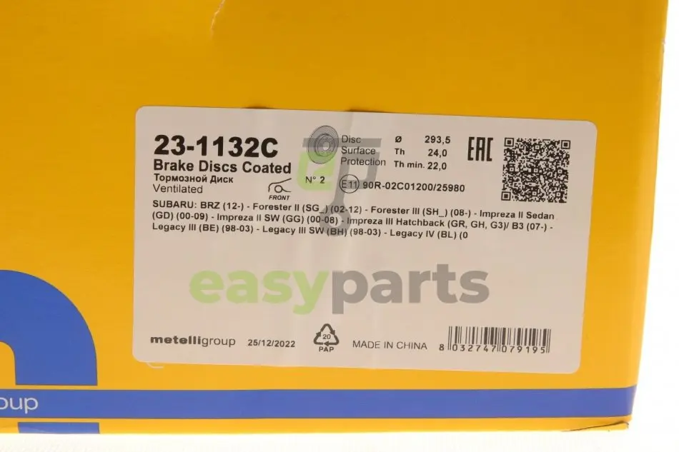Диск гальмівний (передній) Subaru Forester 03-/Impreza 94-/Outback00- (293.5x24) Metelli (Метеллі) 23-1132C
