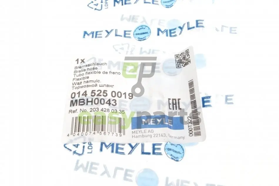 Шланг гальмівний (передній) MB C-class (W203) 02-07 (L=393mm) MEYLE (Мейлі) 014 525 0019