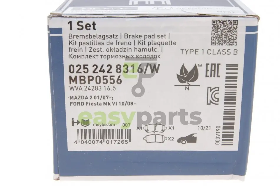 Колодки гальмівні (передні) Ford Fiesta 08- MEYLE (Мейлі) 025 242 8316/W
