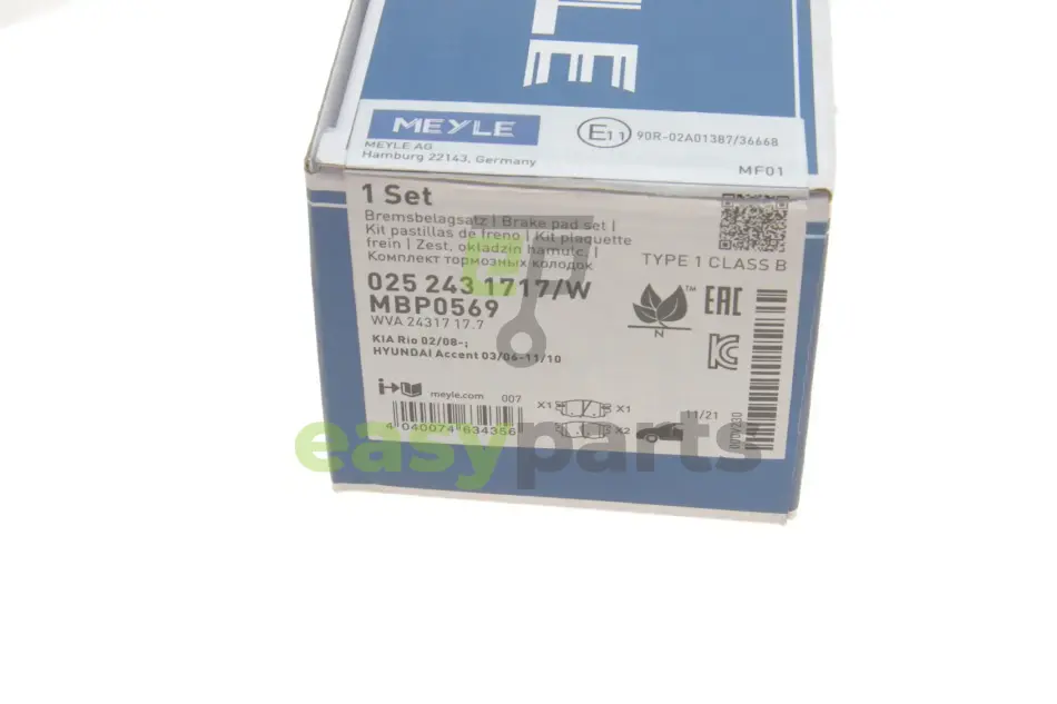 Колодки гальмівні (передні) Kia Rio/Hyundai Accent 05- MEYLE (Мейлі) 025 243 1717/W