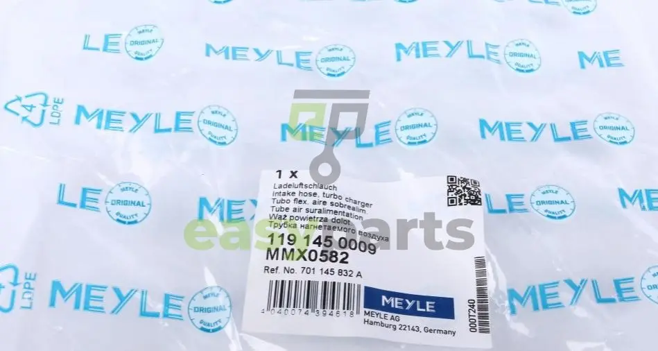 Патрубок інтеркулера VW T4 2.5TDI 95-03 MEYLE (Мейлі) 1191450009