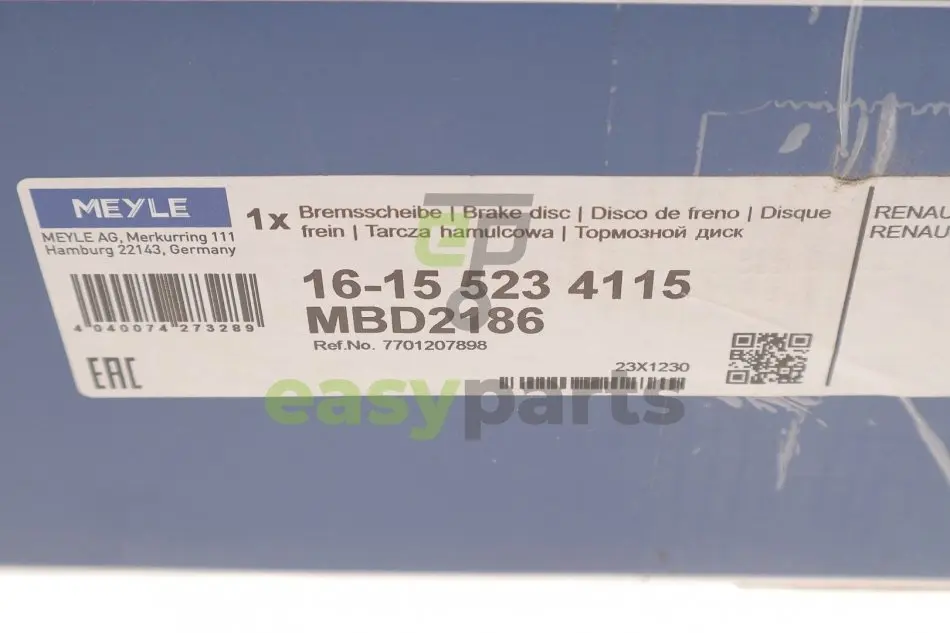 Диск гальмівний (задній) Renault Scenic II 03- (270х10) (+ABS) (з підшипником) MEYLE (Мейлі) 16-15 523 4115