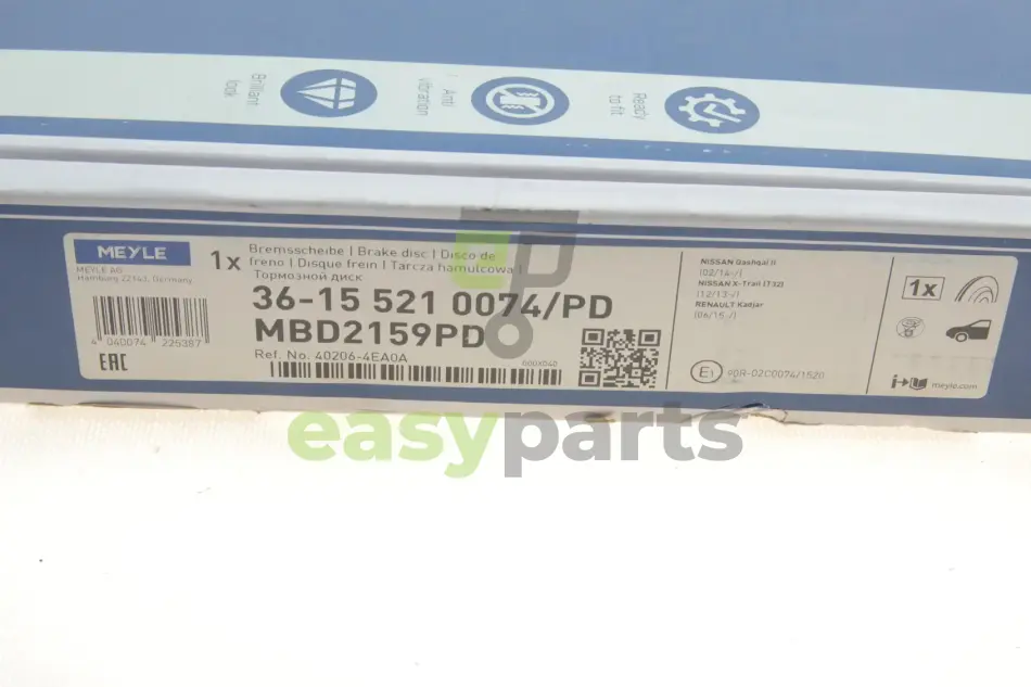 Диск гальмівний (передній) Nissan Qashqai II/X-trail 13-/ Leaf 14-/ Renault Kadjar 13- (296x26) MEYLE (Мейлі) 36-15 521 0074/PD