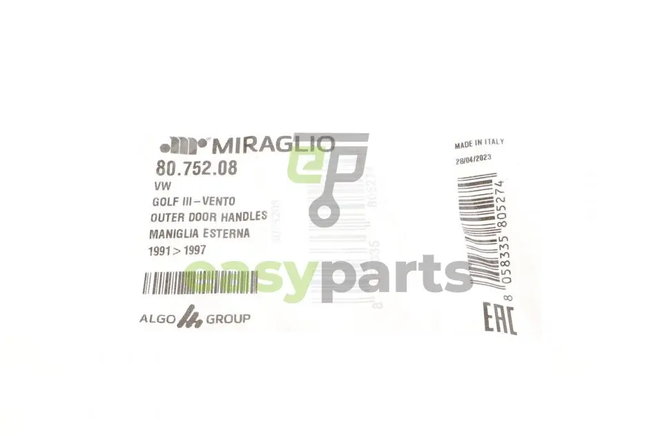 Ручка дверей (передніх/ззовні) VW Golf III 91-98 MIRAGLIO 80.752.08