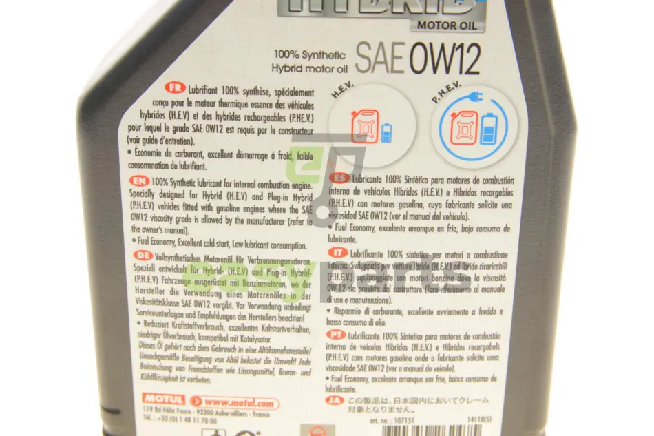 Олива 0W12 NGEN Hybrid (1L) (107151) (SAE J 300/ASTM D1298/ASTM D445/D4741/D2270) знятий з виробн MOTUL 333301