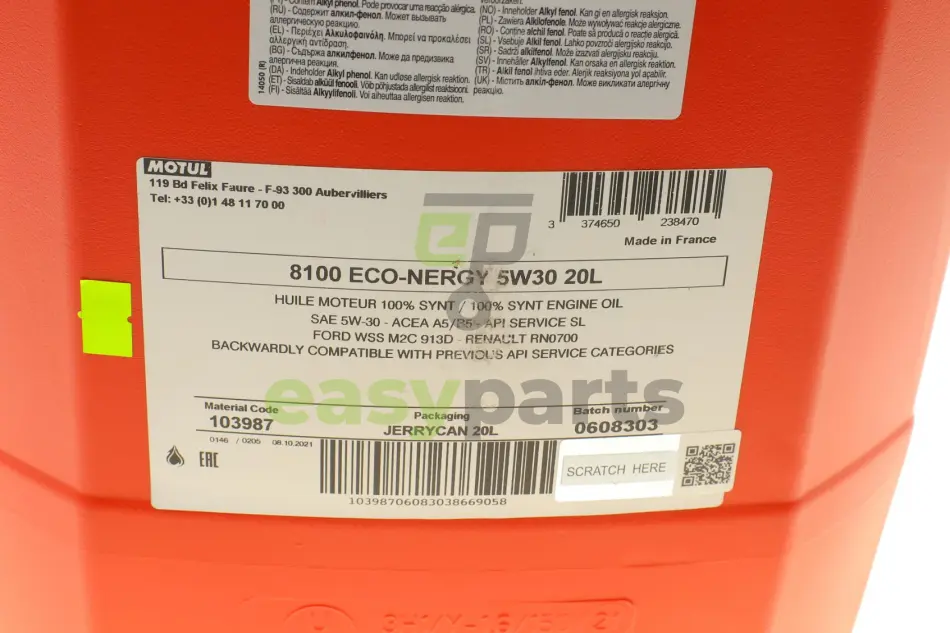 Олива 5W30 ECO-nergy 8100 (20L) (WSS M2C 913D/RN0700/STJLR.03.5003) (103987) MOTUL 812322