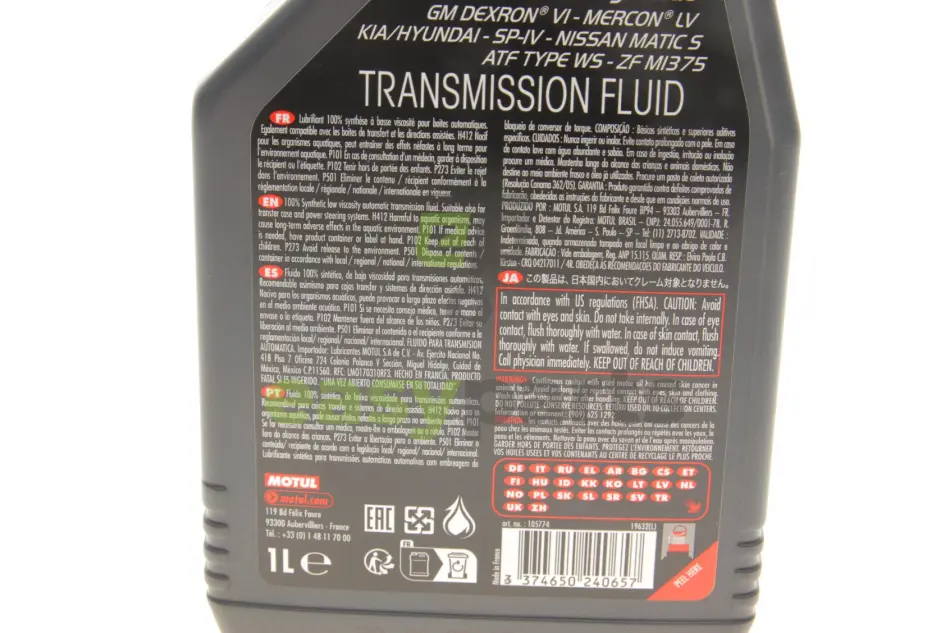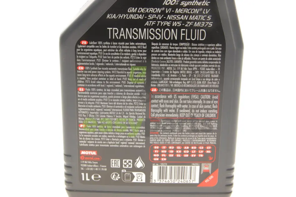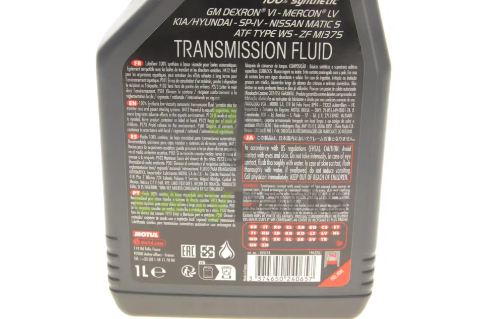 Рекомендації виробника олії: BMW 83 22 9 407 738, A 001 989 77 03, BMW 83 22 9 407 858, A 001 989 78 03, BMW 83 22 9 407 859, ACURA 08200-9008A, BMW 883 22 5 A28 F03, ACURA 08200-9009A, BMW ATF 3+, ACURA 08200-9016A, BMW ATF6, ACURA 08266-99964, BMW L12108, ACURA ATF DW-1, BRILLIANCE ATF PTF-1, ACURA ATF Z1, CHRYSLER 68043742AB, AISIN ATF-0WS, CHRYSLER 68157995AA, AISIN AW-1, CHRYSLER 68157995AB, AISIN AW-2, CHRYSLER 68171866AA, ALLISON C-4, 05127382, CHRYSLER 68171869AA, AML 4G4319A509/AA/S, CHRYSLER 68218054CA, BENTLEY PY112995PA, CHRYSLER 68218057CA, BMW 83 22 0 142 516, CHRYSLER 68218058CA, BMW 83 22 0 397 114, CHRYSLER 68218925AA, BMW 83 22 0 403 248, CHRYSLER ATF+3, BMW 83 22 0 403 249, CHRYSLER ATF+4, BMW 83 22 0 432 807, CHRYSLER MS 90030-A5, BMW 83 22 2 152 426, CHRYSLER MS 9602, BMW 83 22 2 163 514, CITROEN 8+9 Sp. ATF, BMW 83 22 2 289 720, CITROEN AW-1, BMW 83 22 2 305 396, BMW 83 22 2 305 397, 68043742AA, BMW 83 22 2 355 599, 68818925AA, BMW 83 22 2 355 601, 68818925AB, BMW 83 22 2 413 477, A 001 989 45 03, BMW 83 22 9 400 275, A 001 989 68 03, GM AW-1, DEXRON VI ATF, GM DEXRON HP ATF, DEXRON(C)-VI ATF, GM DEXRON II D, DEXRON(R)-VI, GM DEXRON III H, DS (CAPSA) AW-1, GM DEXRON ULV ATF, DS (CAPSA) AW-2, GM DEXRON VI, DS 8 + 9 Speed ATF, GM Dex HP, DS RP 9734 R7, GM GMW16444, Diamond ATF SP II, GM GMW16974, Diamond Queen ATF-PA, GM WS, FIAT 9.55550-AV5, HONDA 08200-9005, FORD MERCON LV, HONDA 08200-9008, FORD MERCON ULV, HONDA 08200-9016-A, FORD WSS-M2C922-A1, HONDA 08200-9017, FORD WSS-M2C949-A, HONDA 082000-9001, FORD XT-10-QLVC, HONDA 08266-9904, FORD XT-6-QSP (SP), HONDA 08266-99907, FUCHS ATF 3292, HONDA ATF DW-1, FUCHS ATF 4400, HONDA ATF Z1, FUCHS ATF 6000 SL, HONDA ATF-11, GM 19256039, HONDA ATF-TYPE 3.1, GM 1940184, HONDA B2618-OLE-025, GM 88861003, GM 88861004, CITROEN AW-2, GM 88863400, CITROEN RP 9734 R7, GM 88863401, DAIMLER ATF+3, GM 93165414, DAIMLER ATF+4, GM 9986153, DAIMLER MS 9602, GM 9986333, DAIMLER SP IV ATF, HYUNDAI SP-IV M, LEXUS 08886-02305, HYUNDAI SP-IV-RR, LEXUS 08886-80803, HYUNDAI SP4-M1, LEXUS ATF Type T-IV, HYUNDAI SPH-IV, LEXUS ATF WS, HYUNDAI WS, LEXUS JWS 3324, INFINITI MATIC D, LEXUS NWS 9638, INFINITI MATIC J, MASERATI 231603, INFINITI MATIC K, MASERATI M-1375.4, INFINITI MATIC S, MAZDA 0000-77-122E01, ISUZU Besco ATF III, MAZDA ATF FZ, ISUZU SCS, MAZDA MERCON LV, ISUZU WSI, MB 236.12, JAGUAR 02JDE 26444, MB 236.14, JALOS Class 1A-LV, MB 236.41, JALOS JASO M315, MITSUBISHI 4030401, JATCO JASO 1A, MITSUBISHI ATF SP-IV, JLR LR023288, MITSUBISHI ATF SPHIV, JLR LR023289, MITSUBISHI ATF-J3, JLR TYK500050, MITSUBISHI ATF-MA1, Jaguar Fluid 8432, MITSUBISHI SP III, KIA NWS-9638, MZ320762, KIA SP-IV, KIA SP-IV M, HONDA Honda Type 3.0, KIA SP-IV-RR, HYUNDAI 00232-1904, KIA SP4-M1, HYUNDAI 040000C90SG, KIA SPH-IV, HYUNDAI 04500-00115, KIA WS, HYUNDAI NWS-9638, LEXUS 00289-ATFWS, HYUNDAI SP-IV, LEXUS 08886-02303, NISSAN MATIC P, VOLVO 31 256 775, NISSAN MATIC S, VW G 052 533, NISSAN MATIC W, VW G 053 001, P/N 0029890603, VW G 053 001 A2, PETRONAS AS8, VW G 055 005, PEUGEOT AW-1, VW G 055 162, PEUGEOT AW-2, VW G 055 540, PEUGEOT RP 9734 R7, VW G 060 162, PORSCHE 00004330400, VW G 060 540 A2, PSA AW-1, ZF AA01 500 001, SAAB 93 165 147, ZF Lifeguard 6, SHELL L-12108, ZF Lifeguard 6 Plus, SHELL M-1375.4, ZF Lifeguard 8, SHELL M-1375.5, ZF Lifeguard 9, SHELL M-1375.6, ZF M-1375.4, SP IV ATF, ZF M-1375.5, SSANGYONG DSIH 5M-66, ZF M-1375.6, SUBARU ATF-WS, ZF S671 090 255, SUZUKI MATIC S, ZF S671 090 281, TOYOTA 00289-ATFWS, ZF S671 090 312, TOYOTA 08886-02303, TOYOTA 08886-02305, MZ320775, TOYOTA 08886-80803, NISSAN 999MP-MPT10P, TOYOTA ATF FZ, NISSAN 999MP-MTS00P, TOYOTA ATF Type T-IV, NISSAN KLE24-00002, TOYOTA ATF WS, NISSAN MATIC D, TOYOTA JWS 3324, NISSAN MATIC J, TOYOTA NWS 9638, NISSAN MATIC K, VOLVO 31 256 774, ZF TE-ML 11