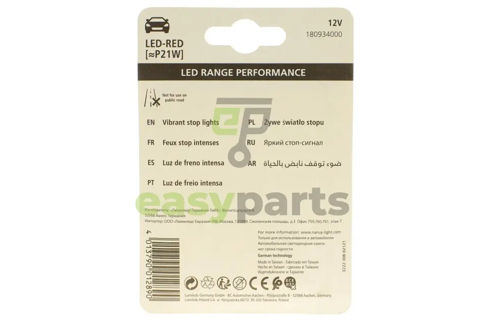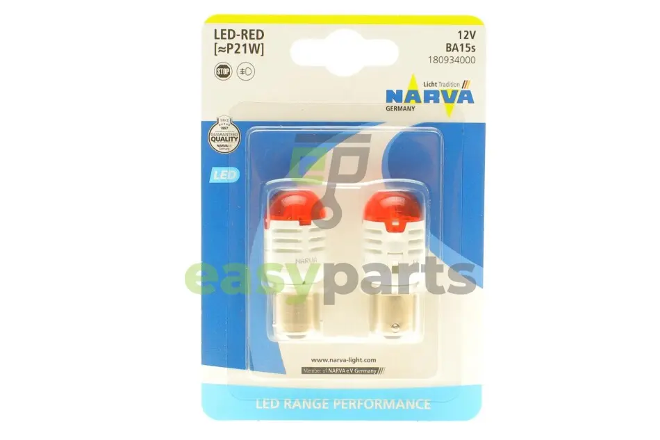 Автолампа P21W 12V BA15s (LED) (червона) (к-кт 2шт.) NARVA (Нарва) 180934000