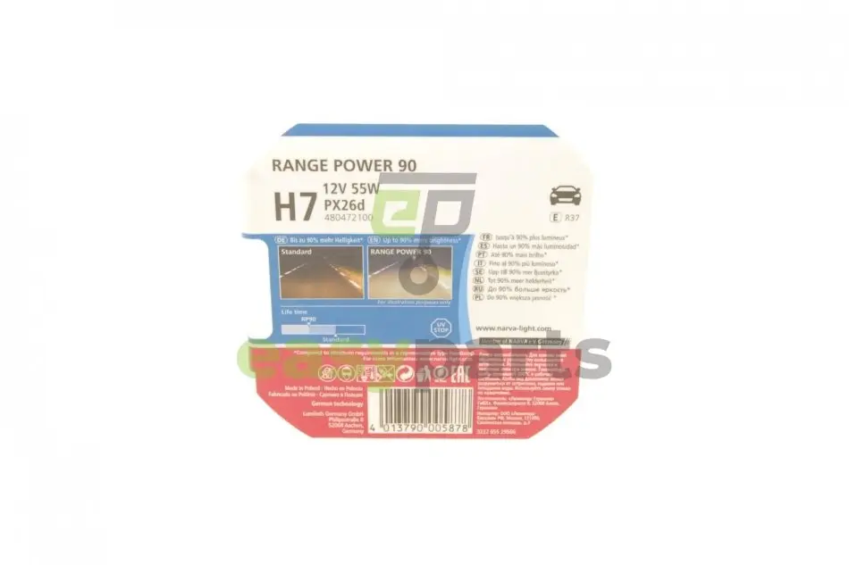 Автолампа H7 12V 55W PX26d Range Power 90 (к-кт 2шт) NARVA (Нарва) 480472100