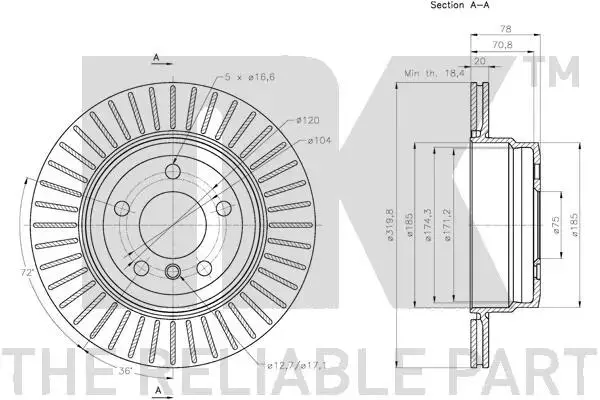 Диск гальмівний зад. BMW X5 (E70), X5 (F15, F85), X6 (E71, E72), X6 (F16, F86) 2.0D-3.0D 10.06-07.19 NK 201583