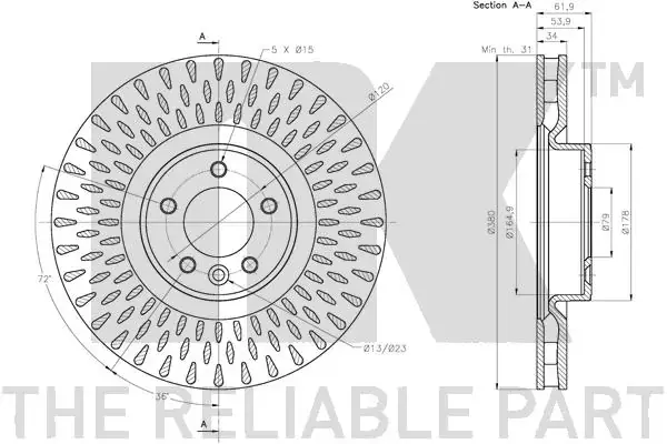 Товщина гальмівного диску (мм): 34