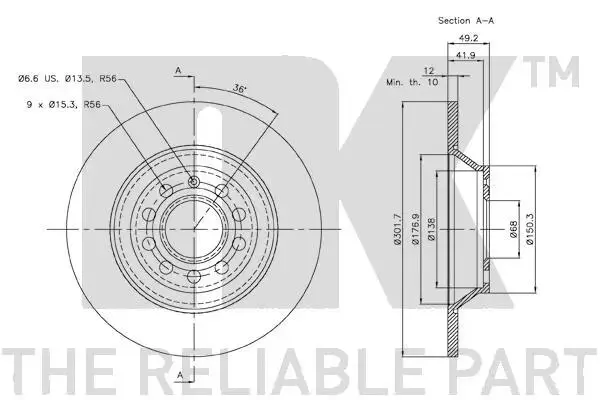 Диск гальмівний задній Audi A6 2.0 TDI,2.7TDi 04- NK 2047109