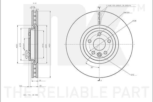 Диск гальмівний (передній) Land Rover Range Rover Velar 2.0/3.0 17- (350x32) PRO+ NK 311230
