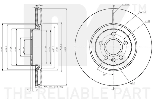 Диск гальмівний (передній) Volvo S90 II/ V90 II 16- (322x28) NK 314876